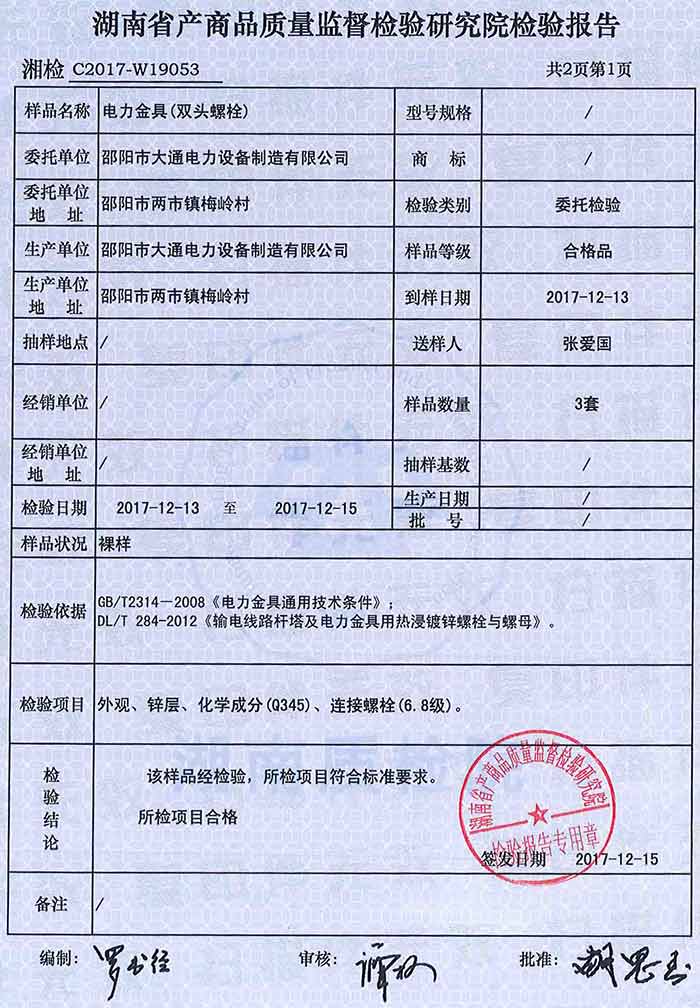 單桿絕緣線橫擔(dān)檢驗報告