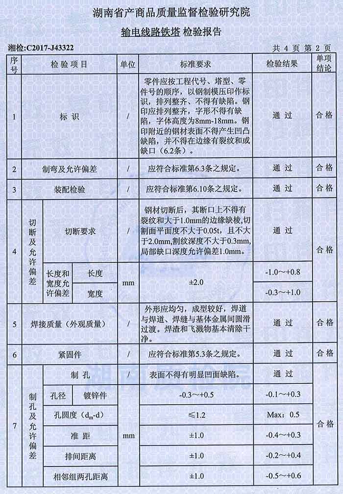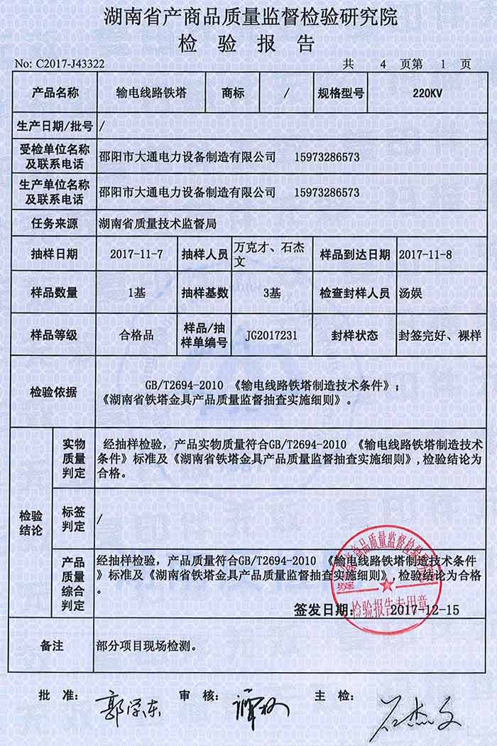 220KV鐵塔檢驗(yàn)報(bào)告